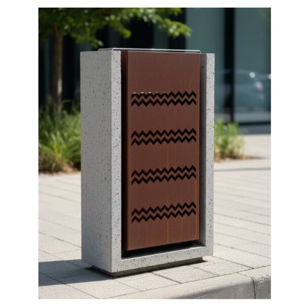 Corbeille Publique en beton architectonique et acier galvanise peint